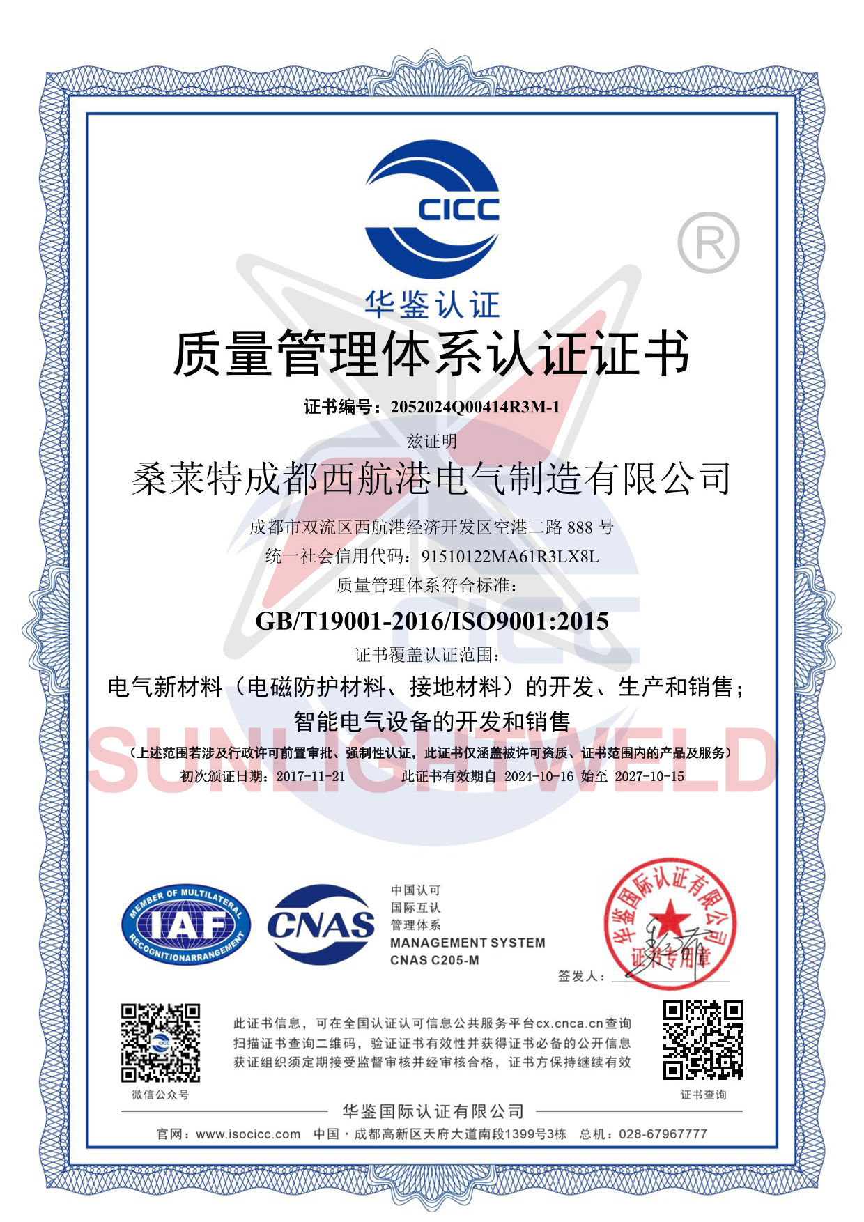 质量管理体系认证证书
